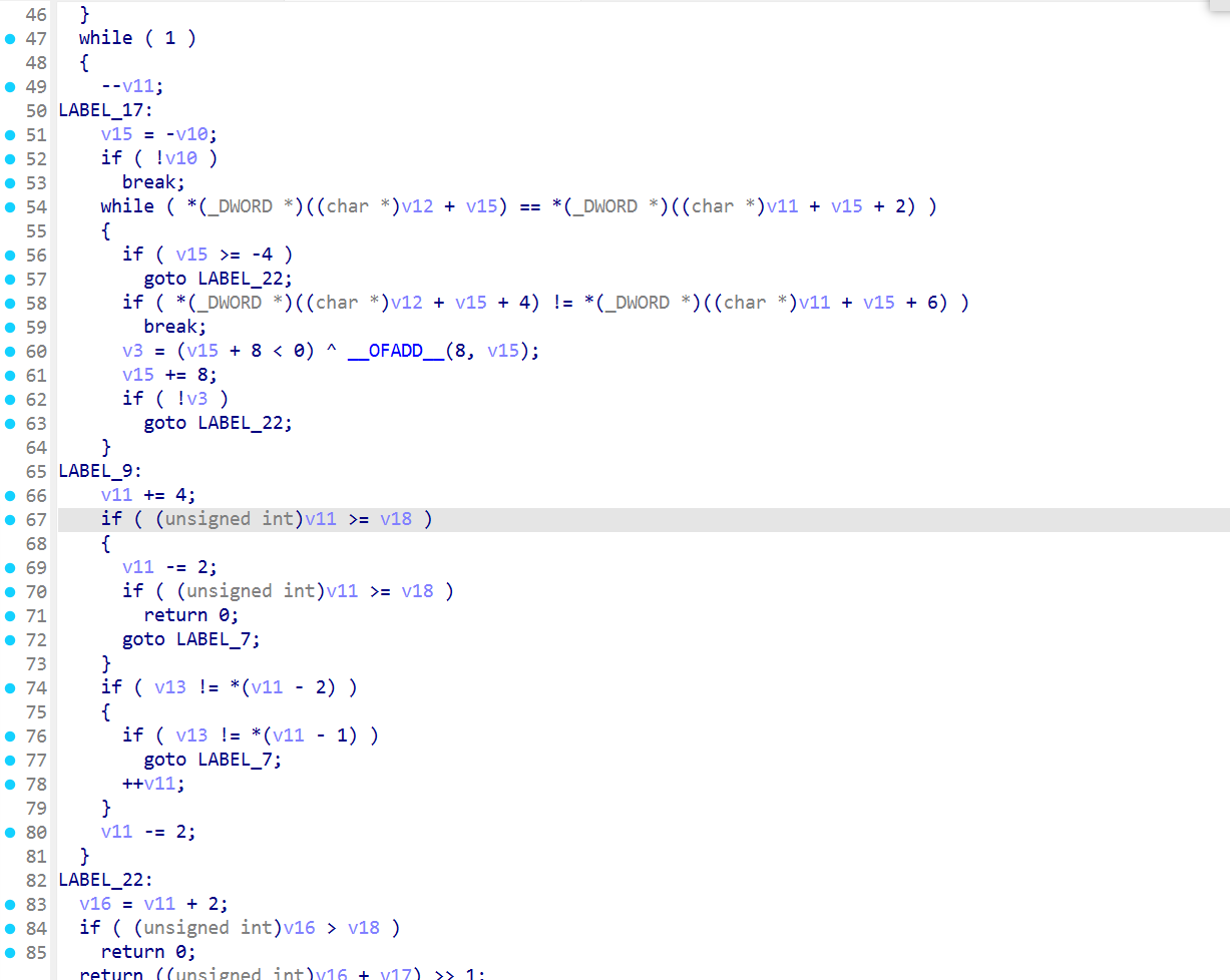- 处理的是宽字符字符串(偏移量2*v7)