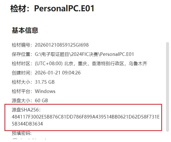 直接计算源盘的SHA256值即可(这边我觉得问的是原始检材的话很容易去查镜像的SHA256,是不是问源盘的会好一点)