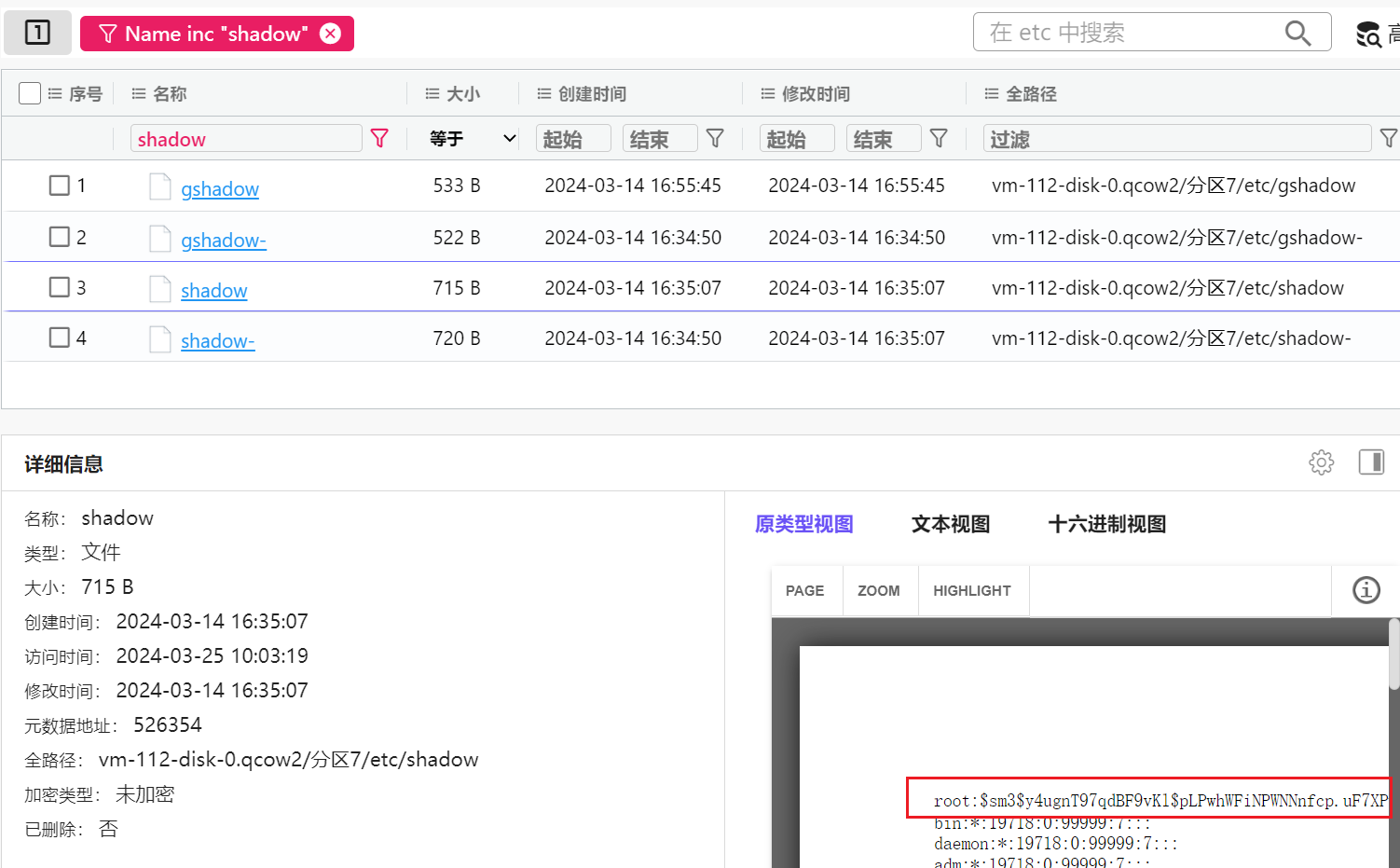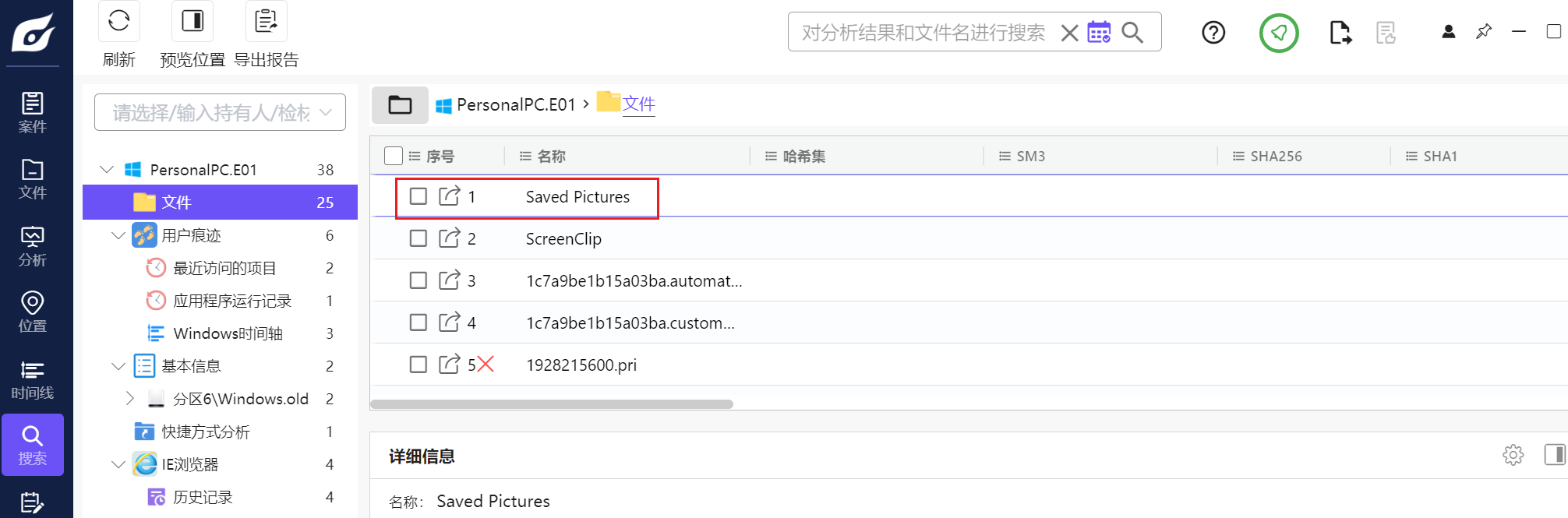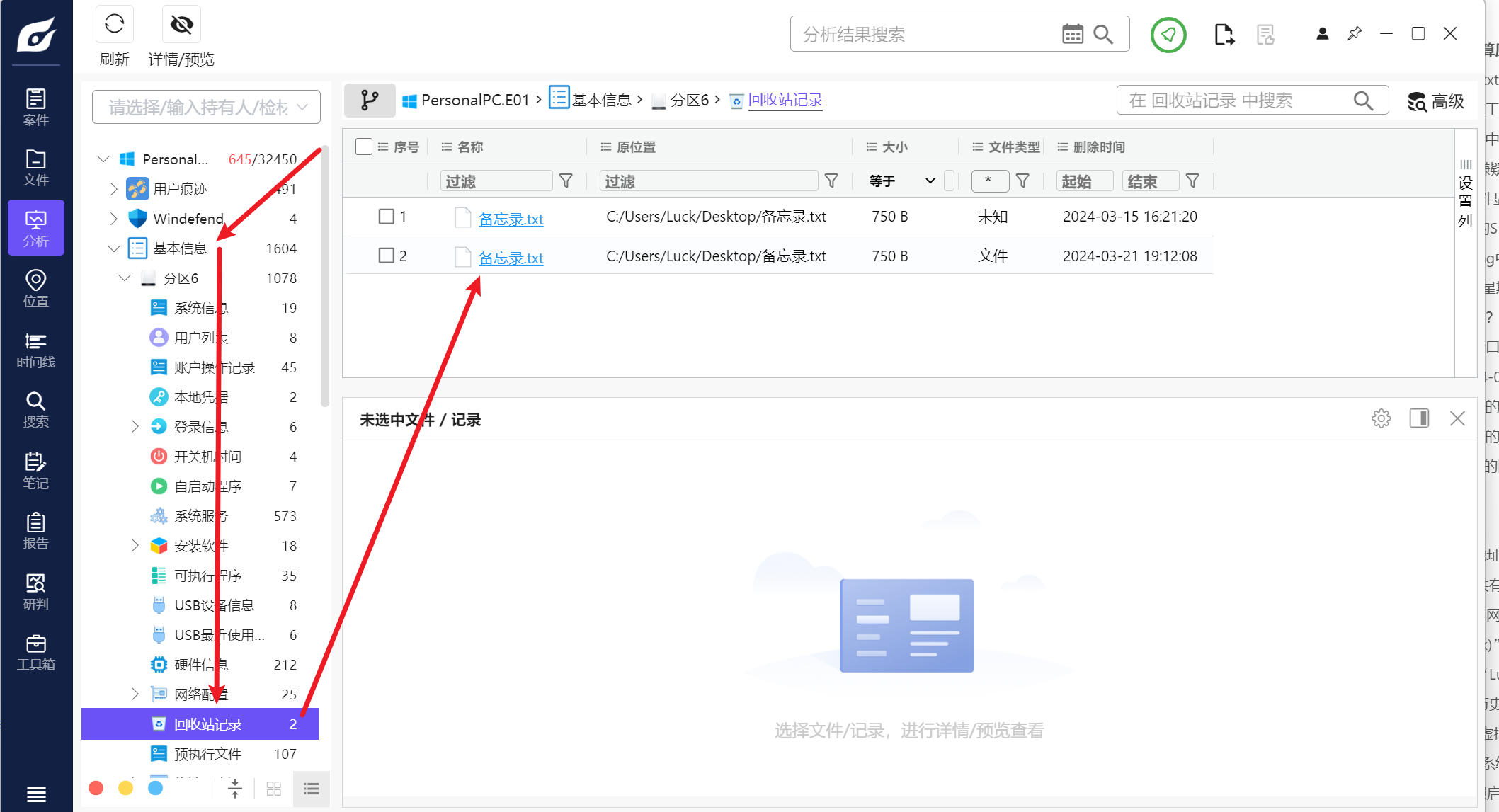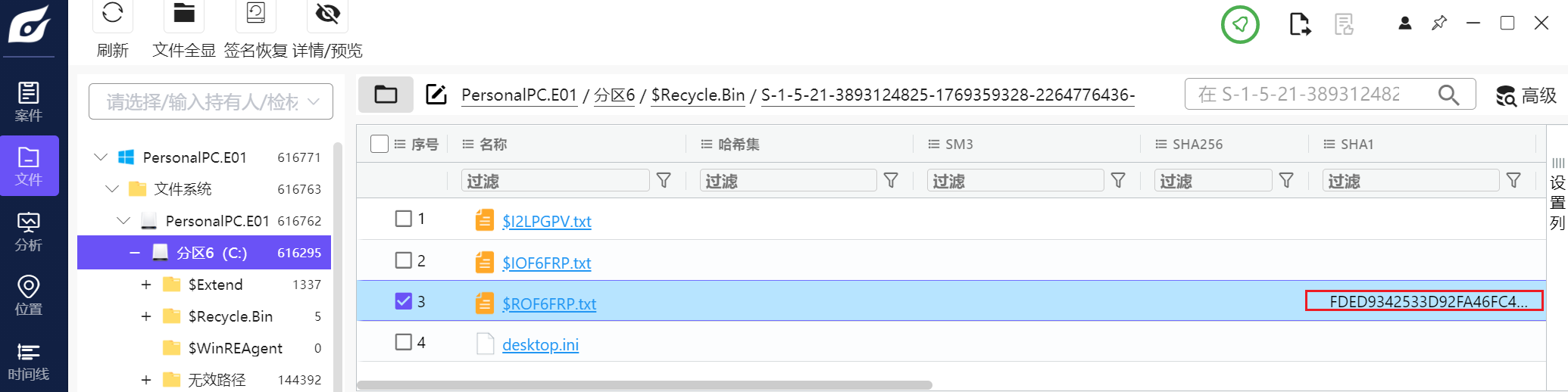 在基本信息即可找到回收站记录,转回源文件直接计算哈希即可