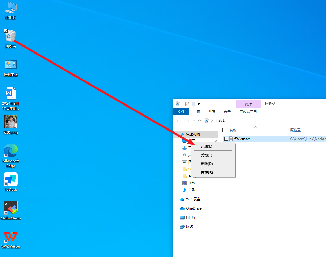 当然也可以直接在虚拟机中恢复回收站文件
