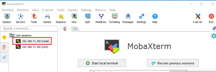 打开MobaXterm即可看到node的连接