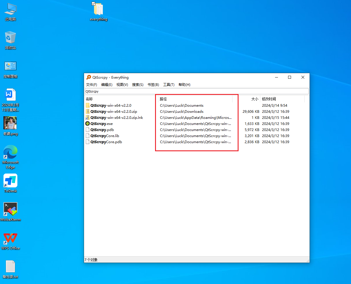 火眼没有检测出QtScrcpy这个软件,我们利用everything查找一下