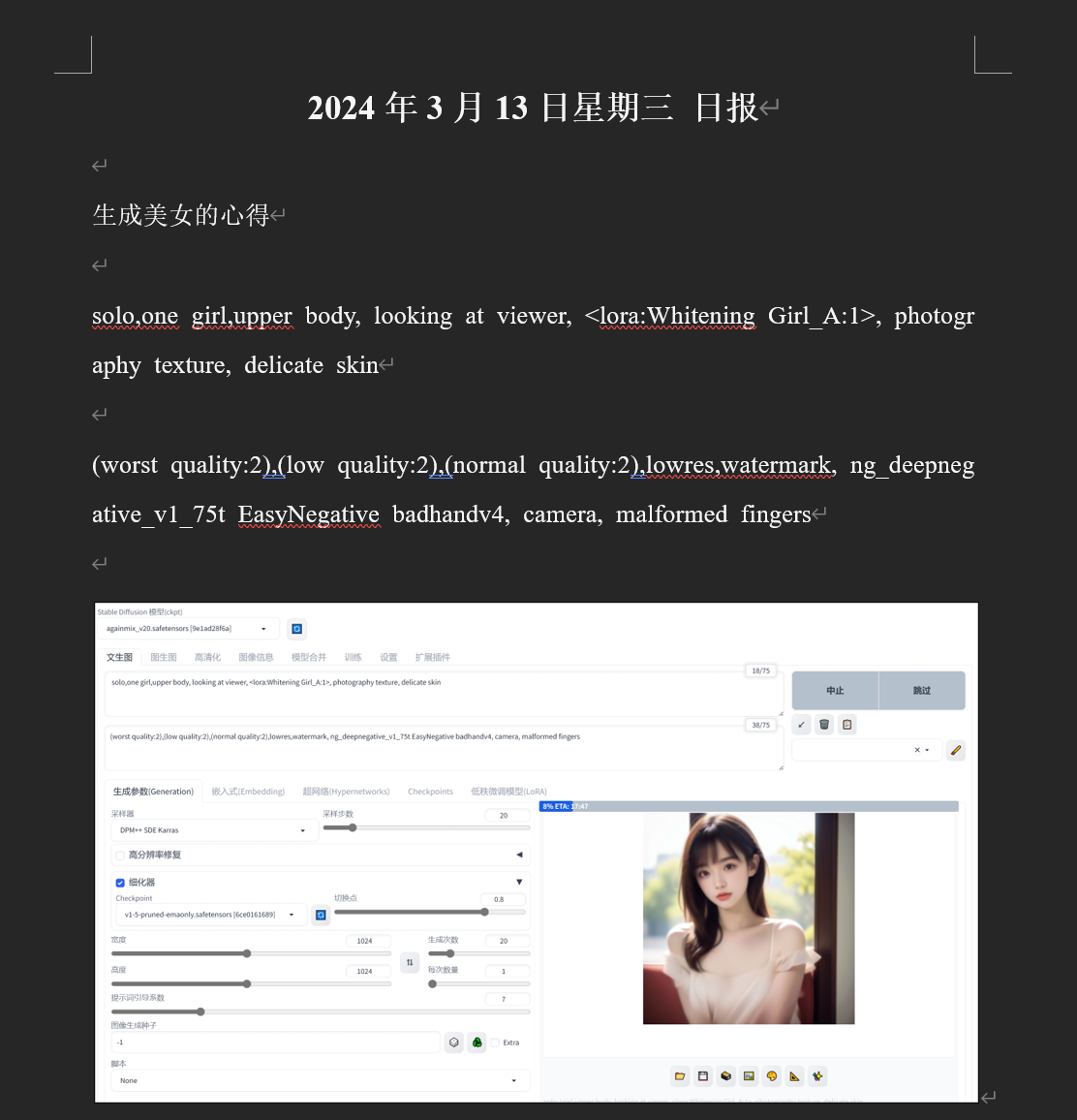word的截图写了使用的模型,是v1-5-pruned-emaonly.safetensors