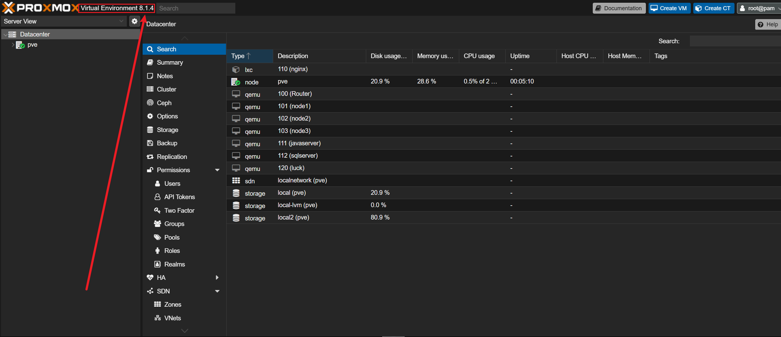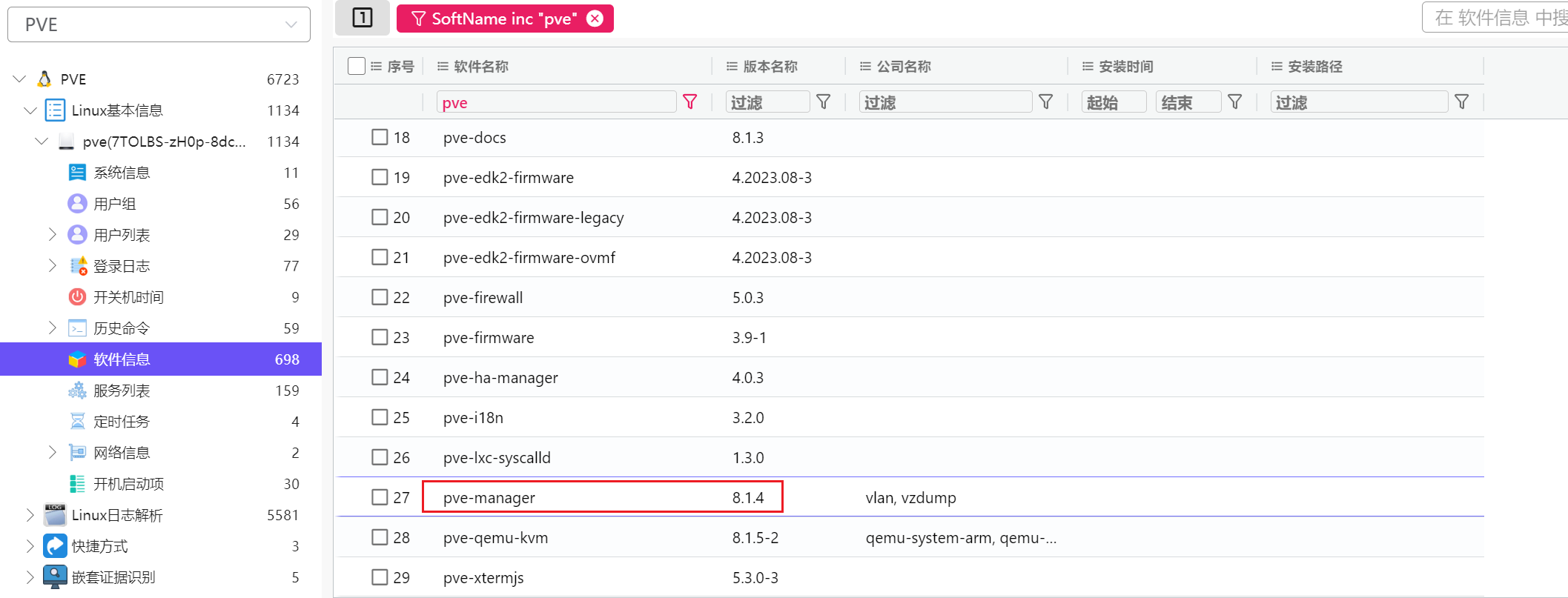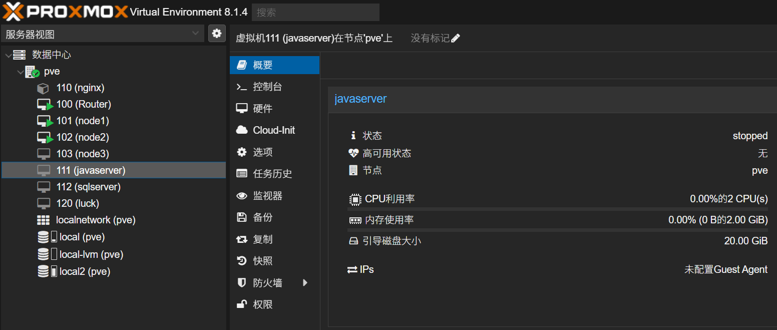 看看pve的版本号,直接看软件信息的pve-manager,版本号是8.1.4