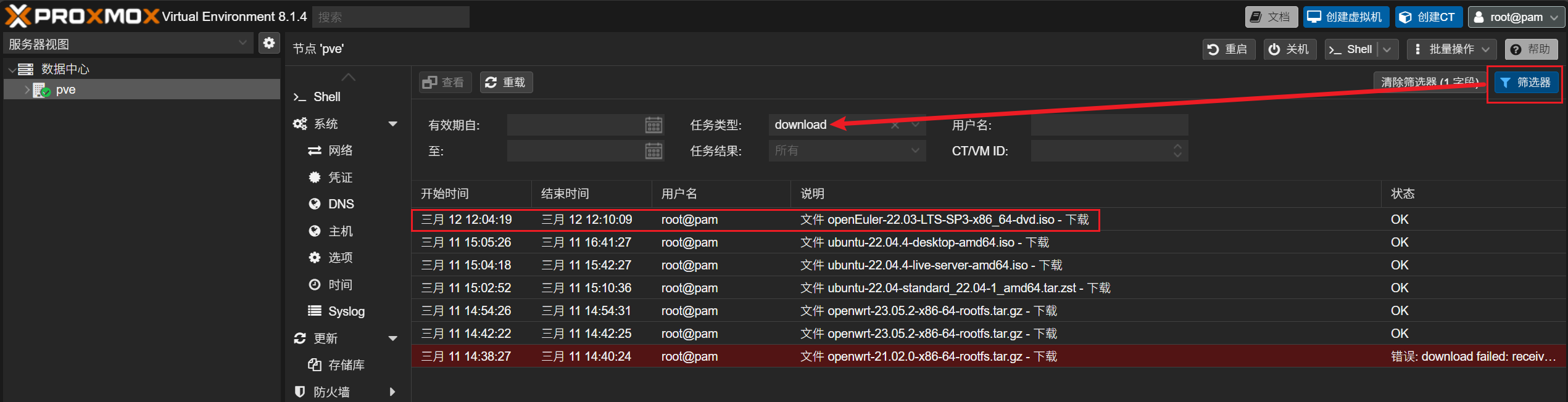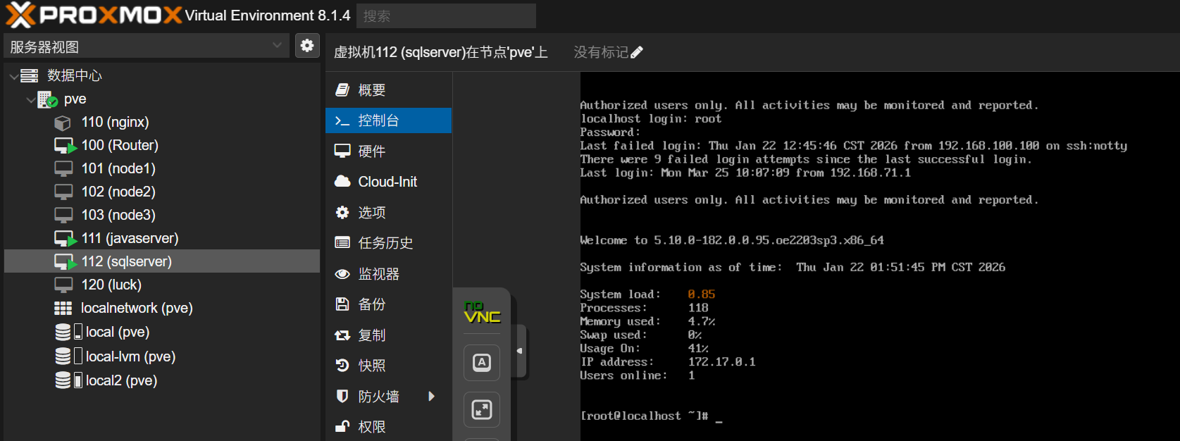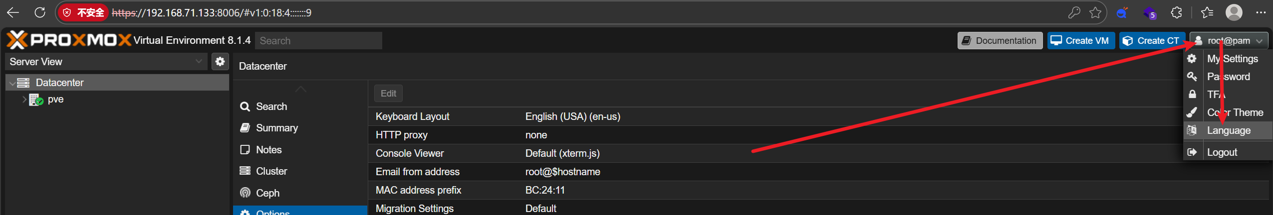 看看pve的版本号,直接看软件信息的pve-manager,版本号是8.1.4