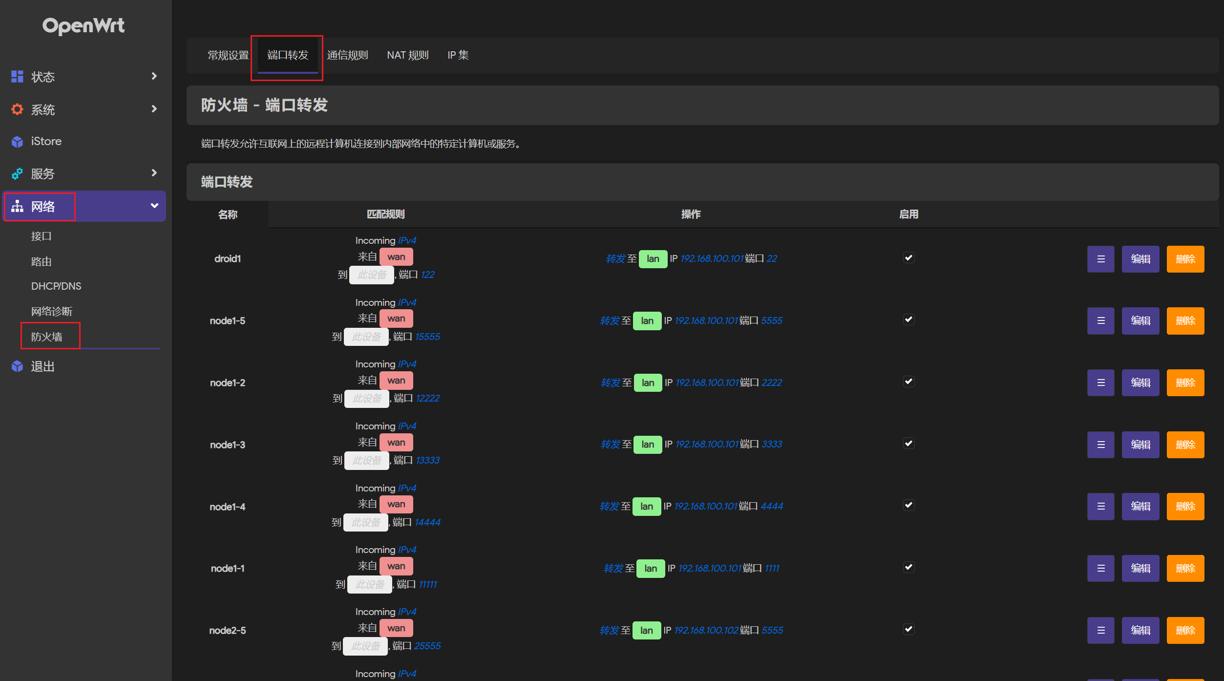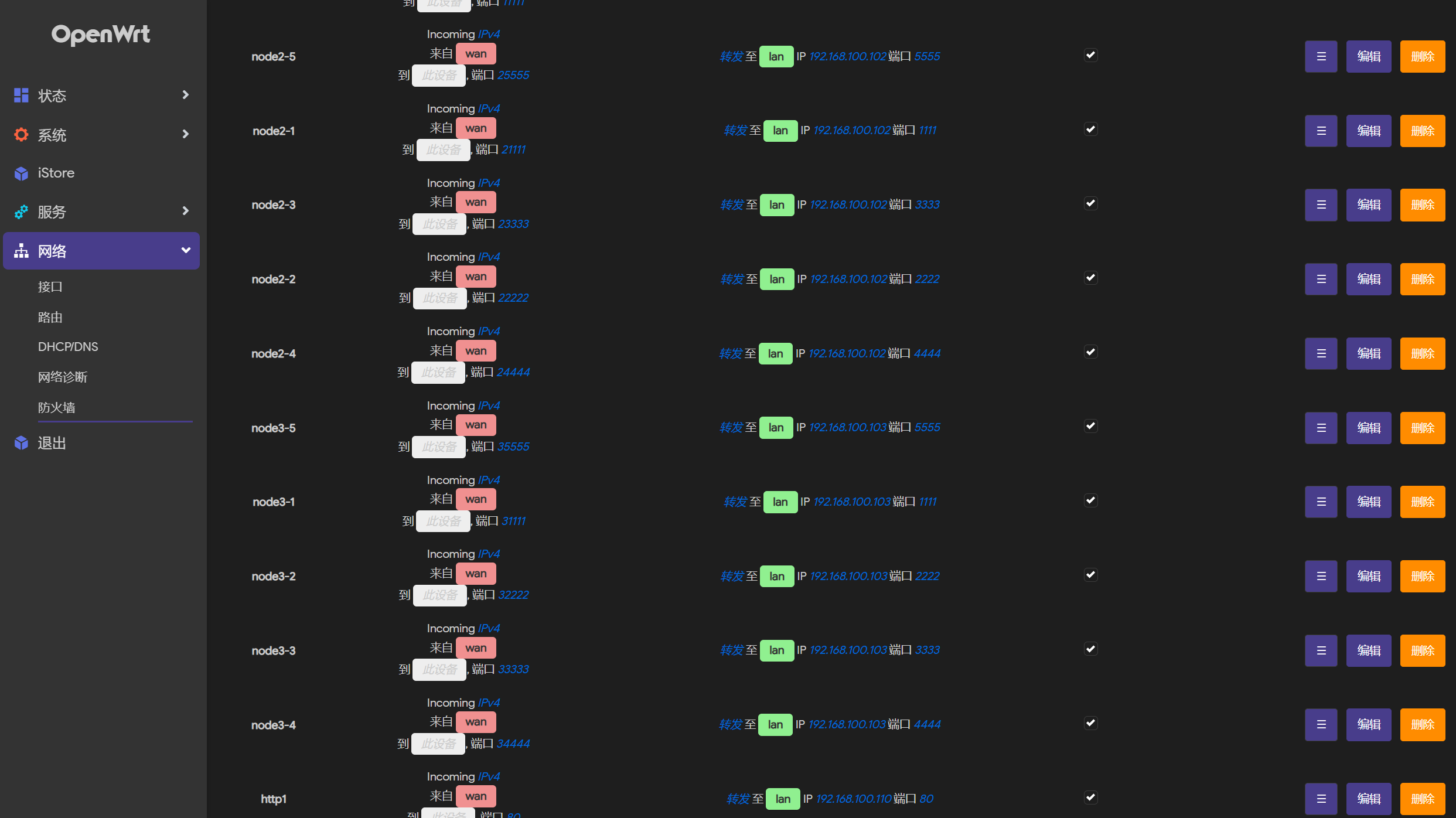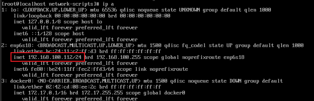 发现了IP地址设置在192.168.100.112,但是网卡的名字写错了,不是enp6s18,要改是ens36才对,我们把192.168.100.x都放在那边