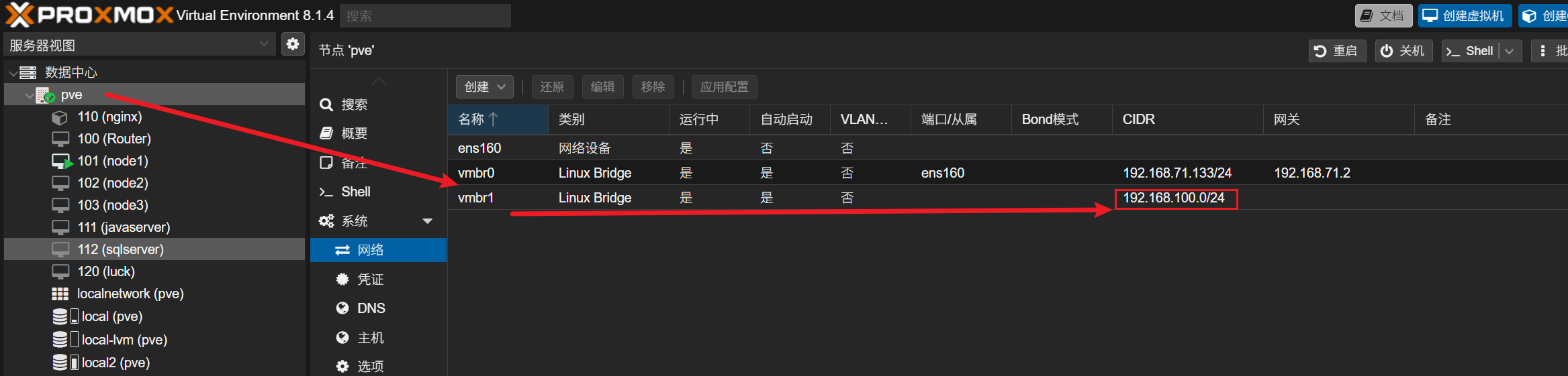 又因为我们之前就给PVE加过那个网卡,所以nginx连着这俩呢