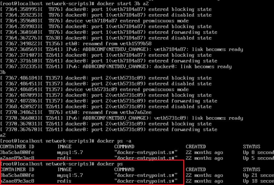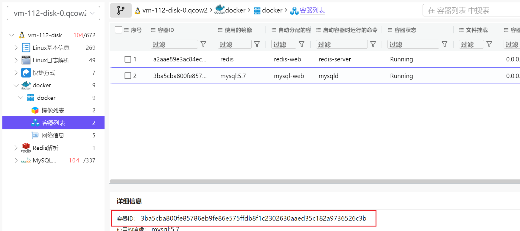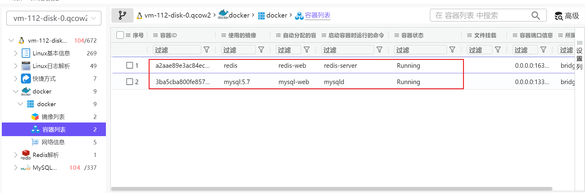 我们发现两个数据库服务都在docker容器里,所以我们需要先启动这俩