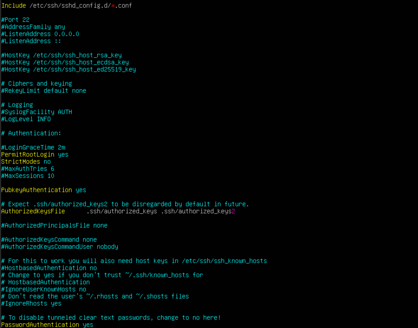 看了看ssh的配置,结果发现这边被注释掉了,我们去解开一下