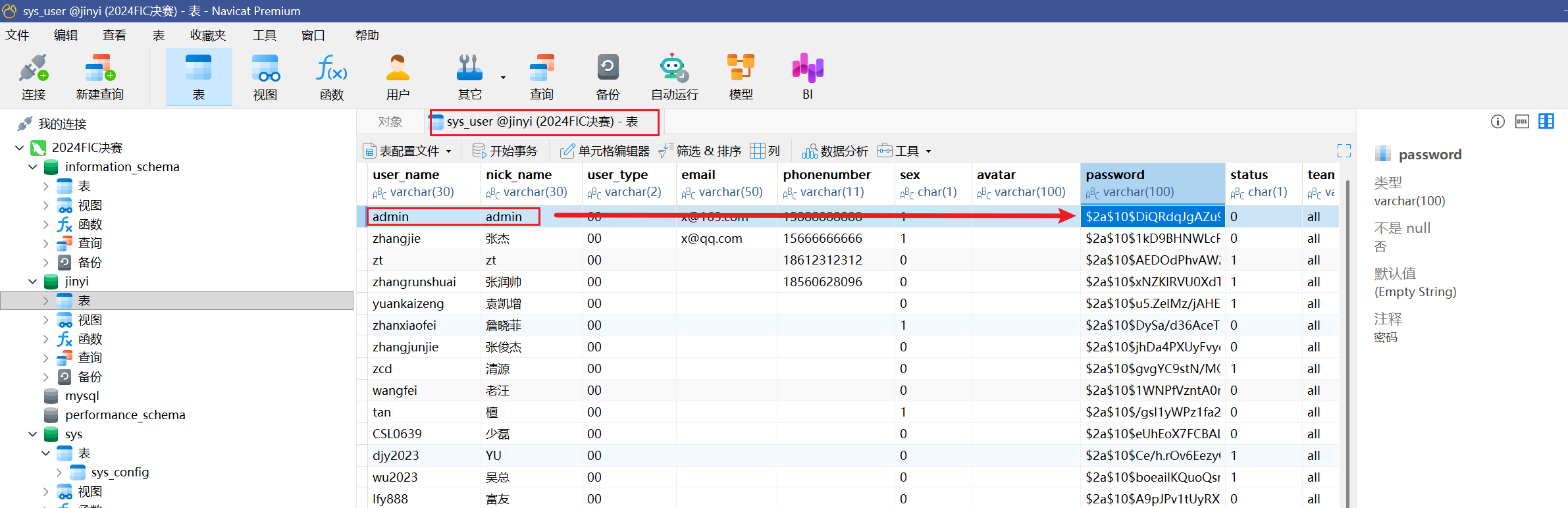 即可在表sys_user中成功寻找到admin的密码
