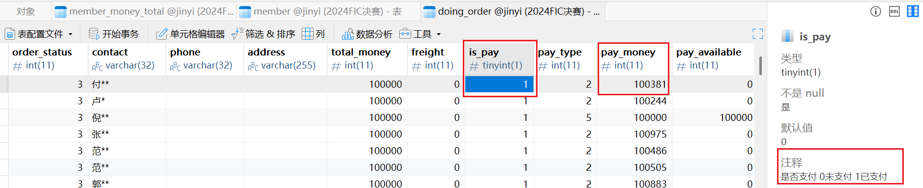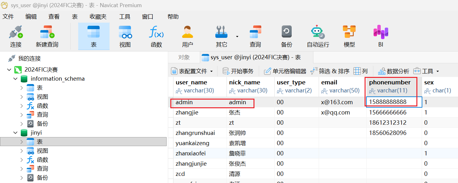同一张表,手机号为15888888888