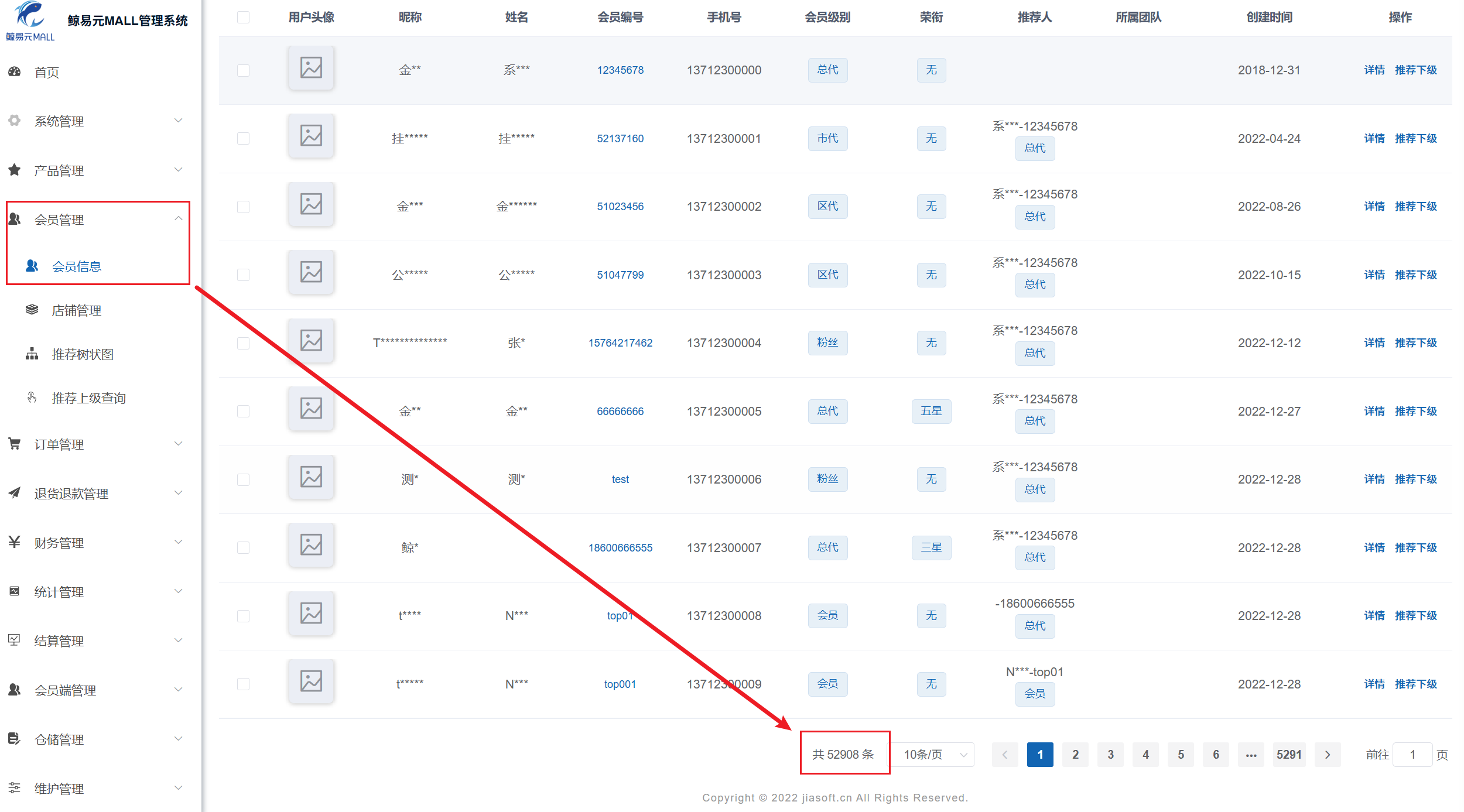 重构完之后轻易即可看见会员信息中写了共有52908位会员