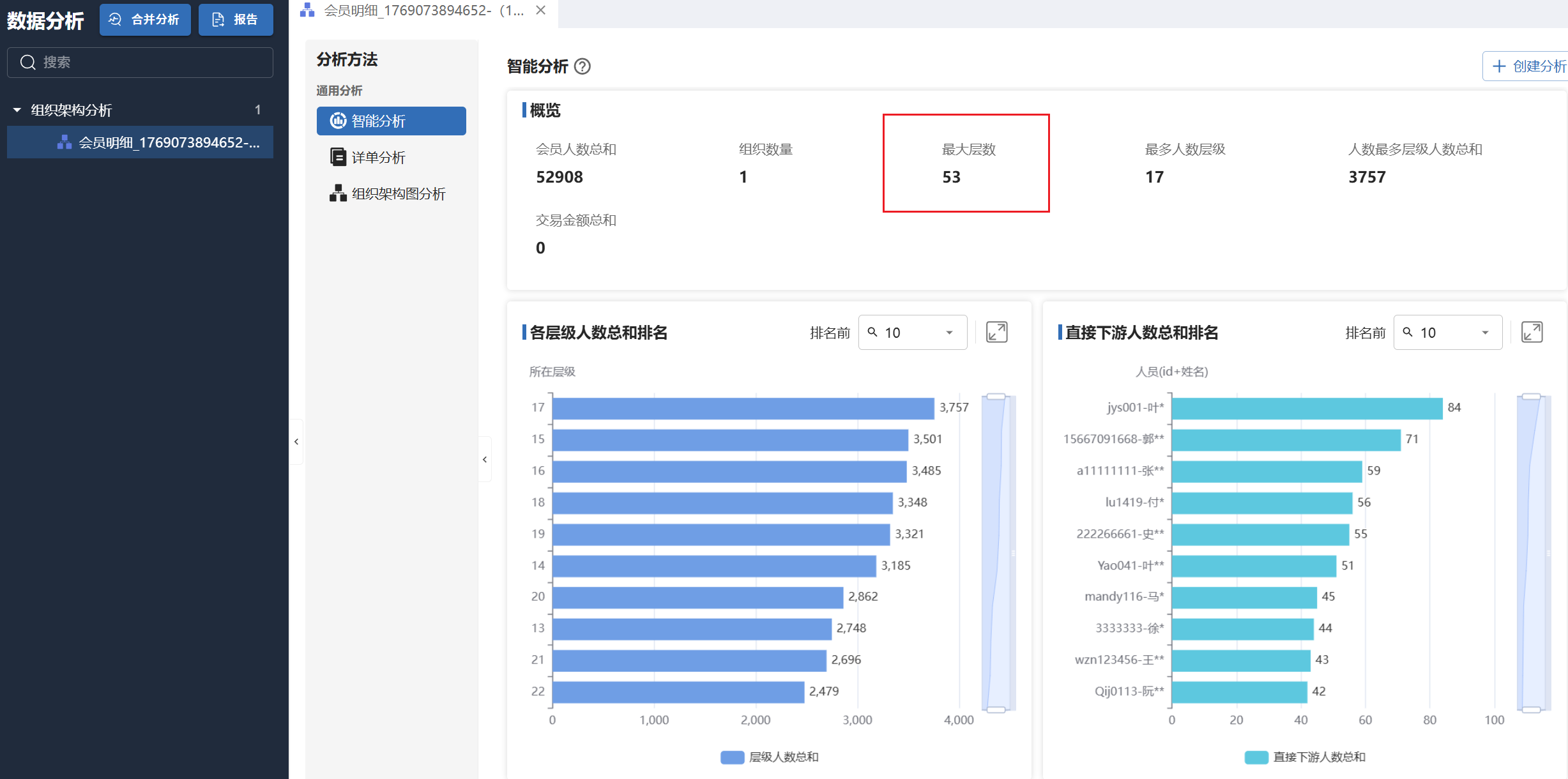 2.“鲸易元MALL管理系统”管理后台中,以“推荐人id”做为上级id对会员进行层级分析,总层级为多少层?(最高层级视为1层)