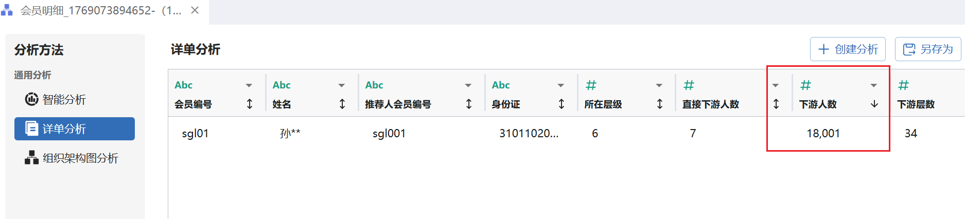 即可精准定位下游人数为18001