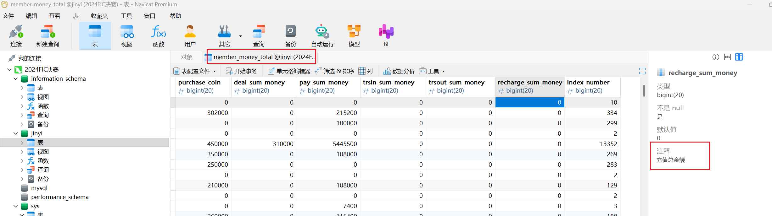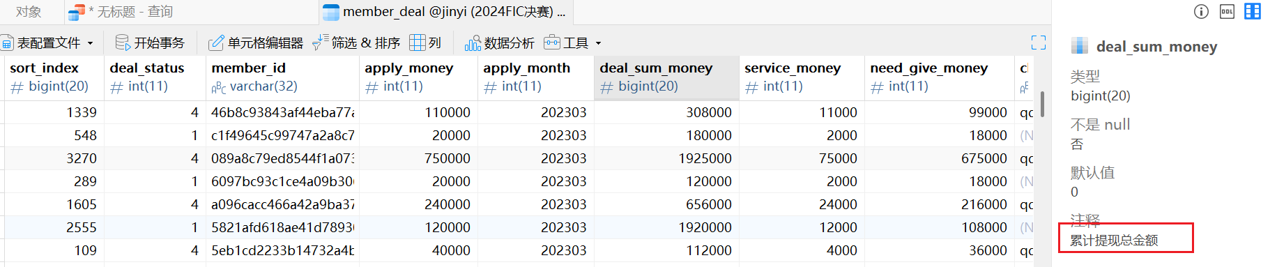 在member_money表中定位到了充值总金额字样,我们提取表格出来