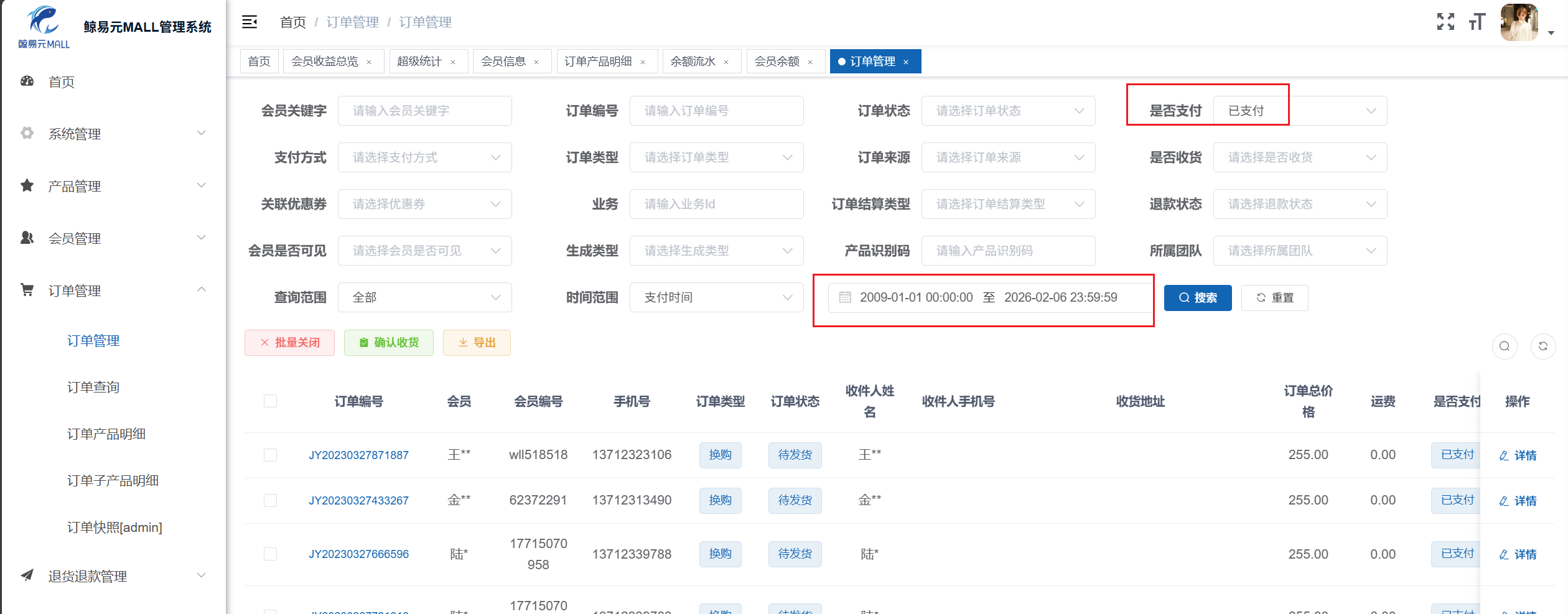 5.“鲸易元MALL管理系统”管理后台中,已支付订单的数量为?