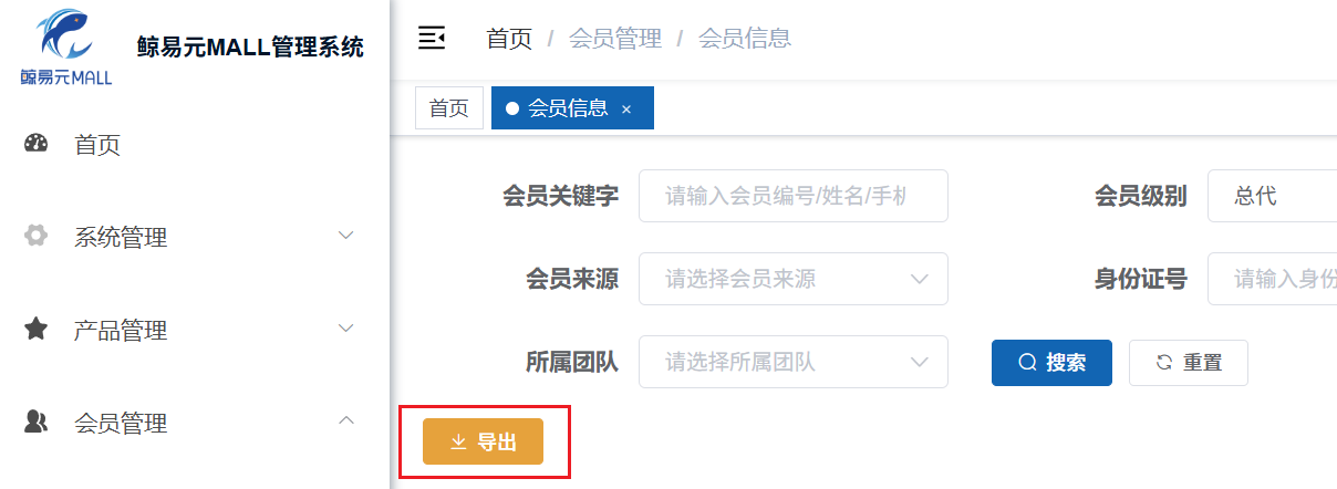 1.“鲸易元MALL管理系统”管理后台中,会员级别为“总代”的数量为?