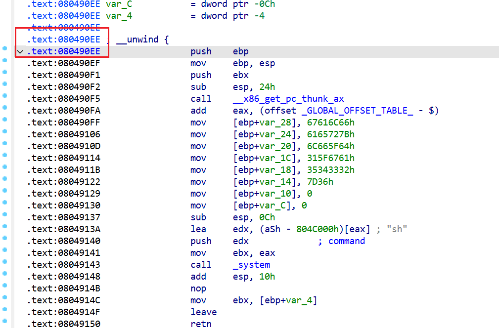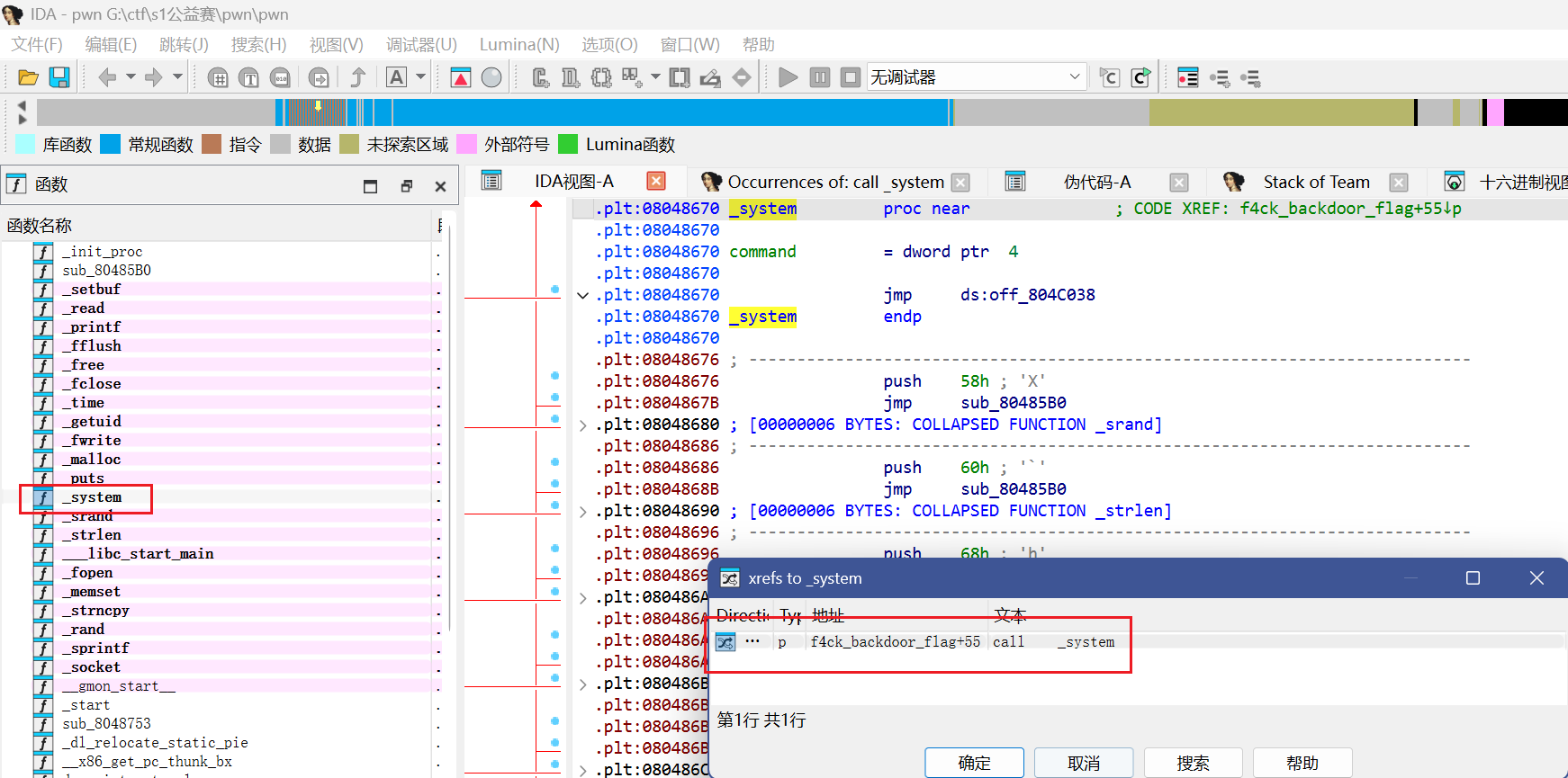 一个个找后门函数即可,当然我们也可以直接定位调用了system函数的位置