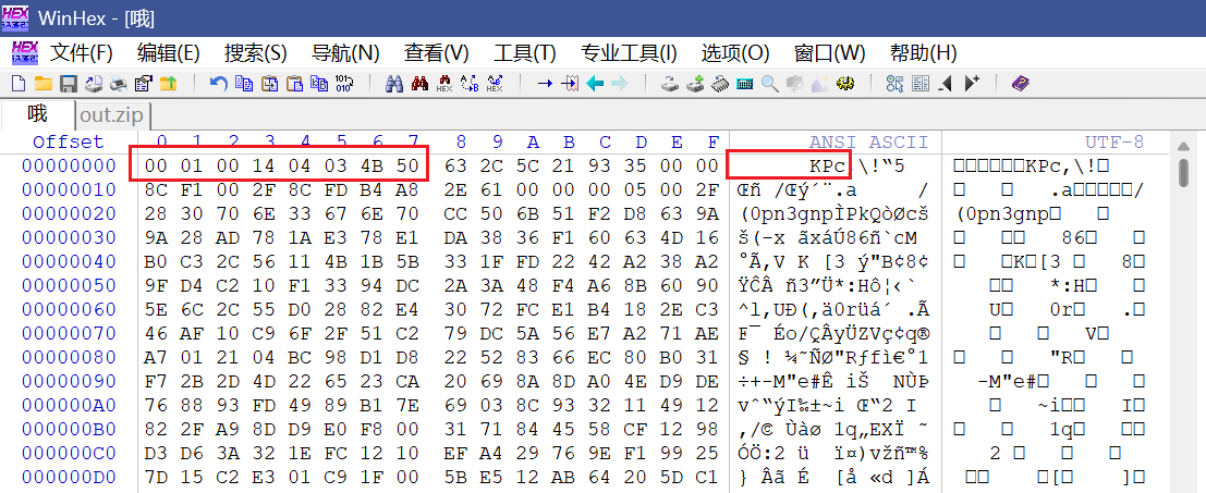 拿到题目,首先发现文件头损坏了,zip的文件头该是504B0304才对