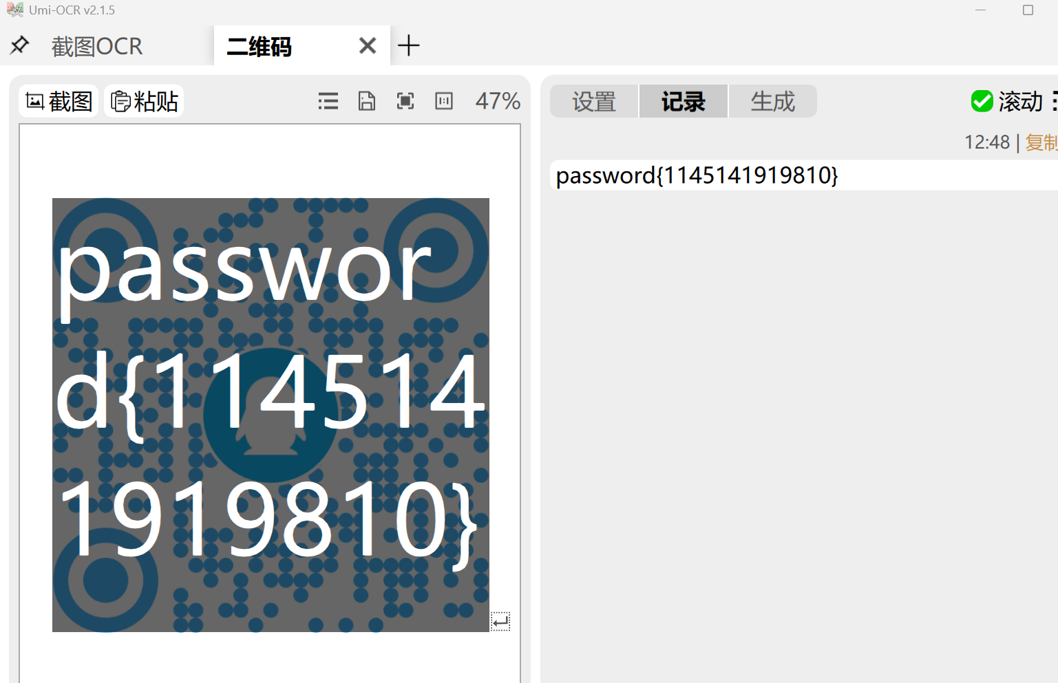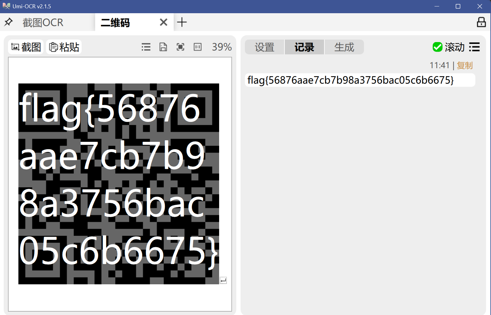 改后缀之后得到了一个二维码,解开得到密钥