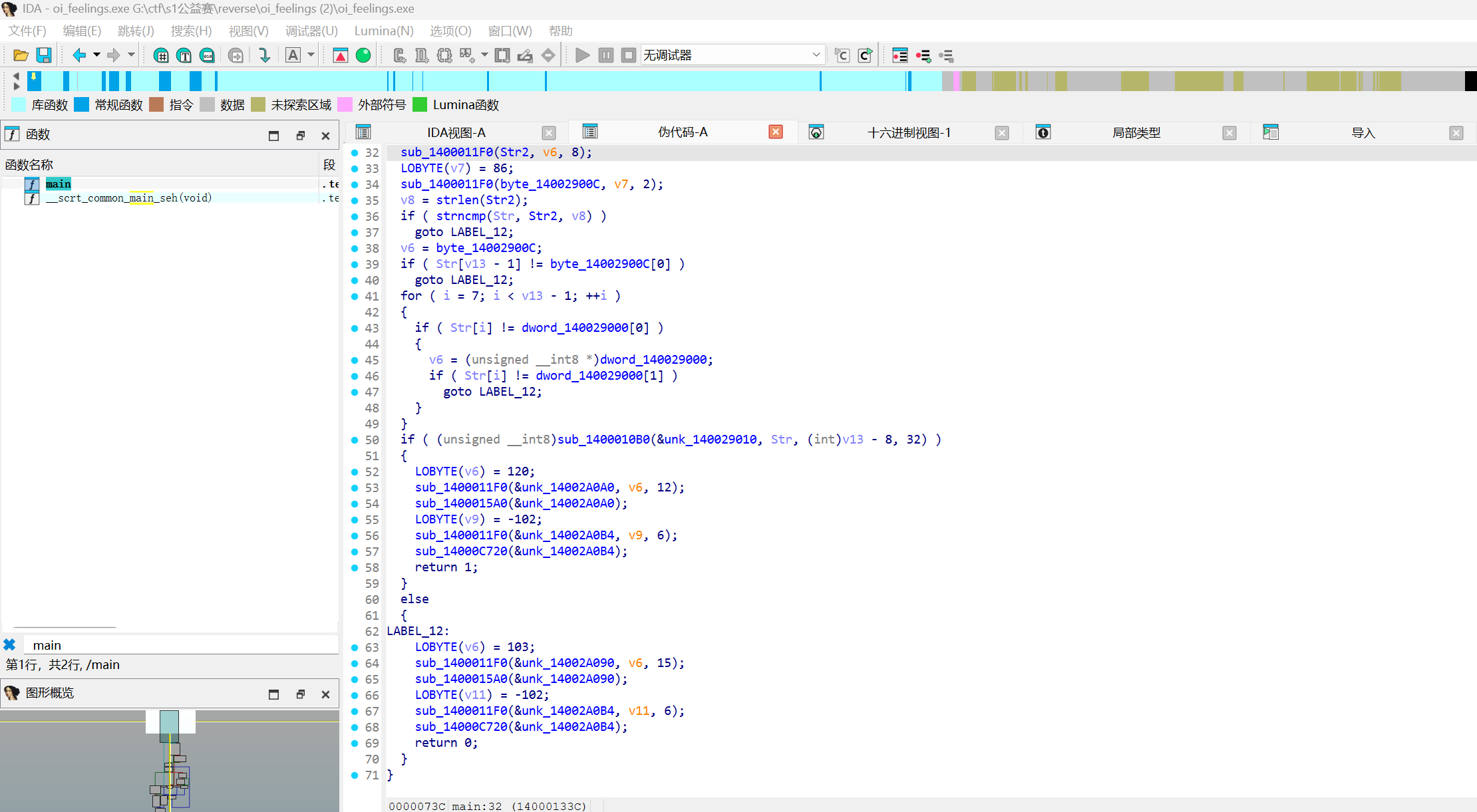 这题是个 Windows x86 异常流混淆 的逆向题,核心不是普通 if/else 校验,而是把真正的变换逻辑塞进了: