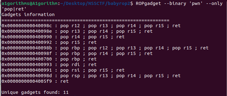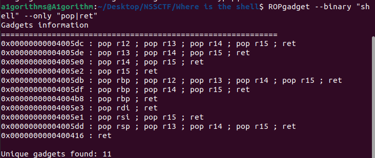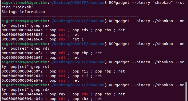 这边我们需要这个rdi和ret的地址,我们利用代码