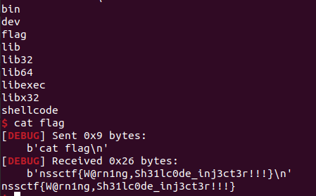 | open("./flag", 0) read(3, flag_buf, 0x50) write(1, flag_buf, 0x50)