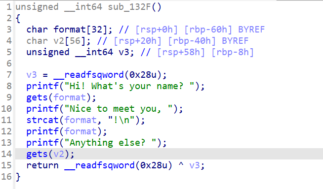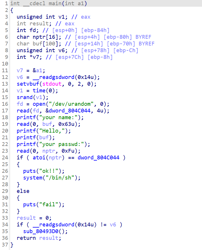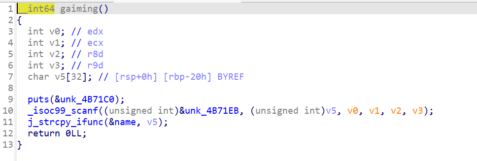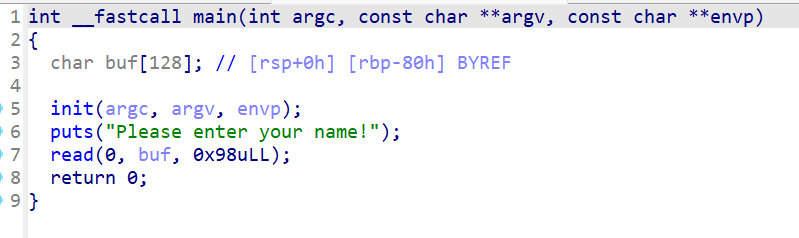 打开看到一个明显的栈溢出,但溢出空间不是很大,很小一个