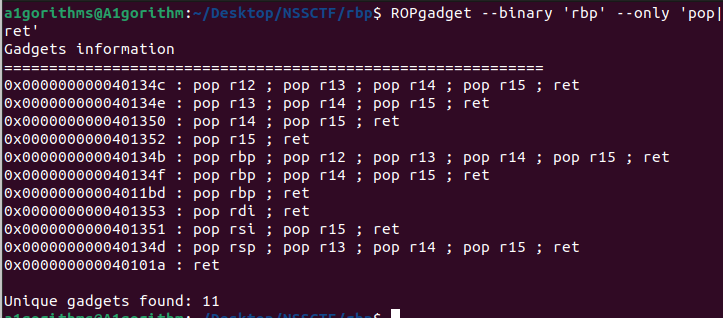 所以我们返回的时候要从这个0x40127F开始,不然上边push rbp又给冲掉了